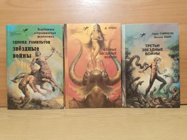 Description: Книга 1. (Том 7). Гамильтон. Состояние отличное! Битва Империи. Угроза из космоса. Космические пираты. Нападение. Книга 2. (Том 8). Лукас. Состояние отличное! Звезда Смерти. Империя наносит удар. Возвращение джедая. Книга 3. (Том 9). Гаррисон. Капп. На нескольких страницах след от влаги. Проклейка вначале книги. Загрязнение уголков нескольких листов. Пункт вторжения - Земля. Агент Галактики. Оружие хаоса. Игра с Монстром Маскалад в красном свете